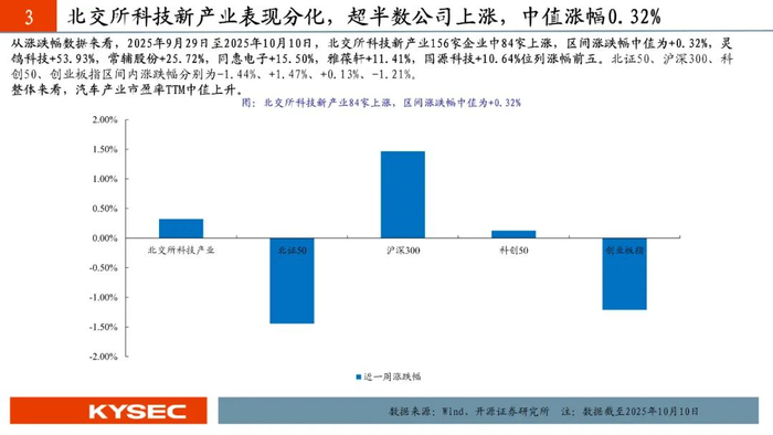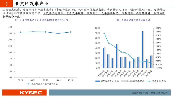 · 科技新产业:汽车产业PE TTM中值上升