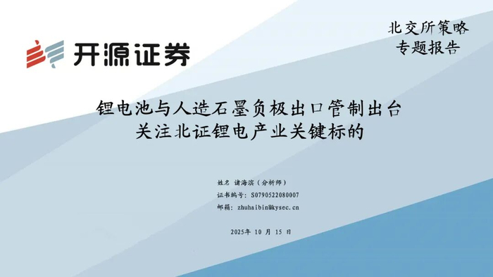 ·锂电池与人造石墨负极出口管制出台,关注北证关键标的
