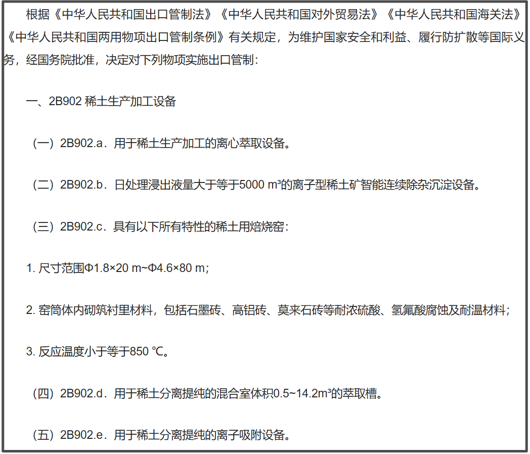 从稀土相关技术、到稀土生产加工设备、原辅料,都进行全面出口管制。