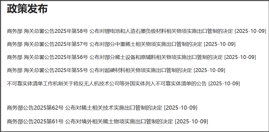 当然,我方对此的回应是:“10月9日,商务部会同海关总署发布关于对超硬材料、稀土设备和原辅料、钬等5种中重稀土、锂电池和人造石墨负极材料相关物项实施出口管制措施的公告,将于11月8日正式实施。此前,我们已经向有关国家和地区作了通报。”